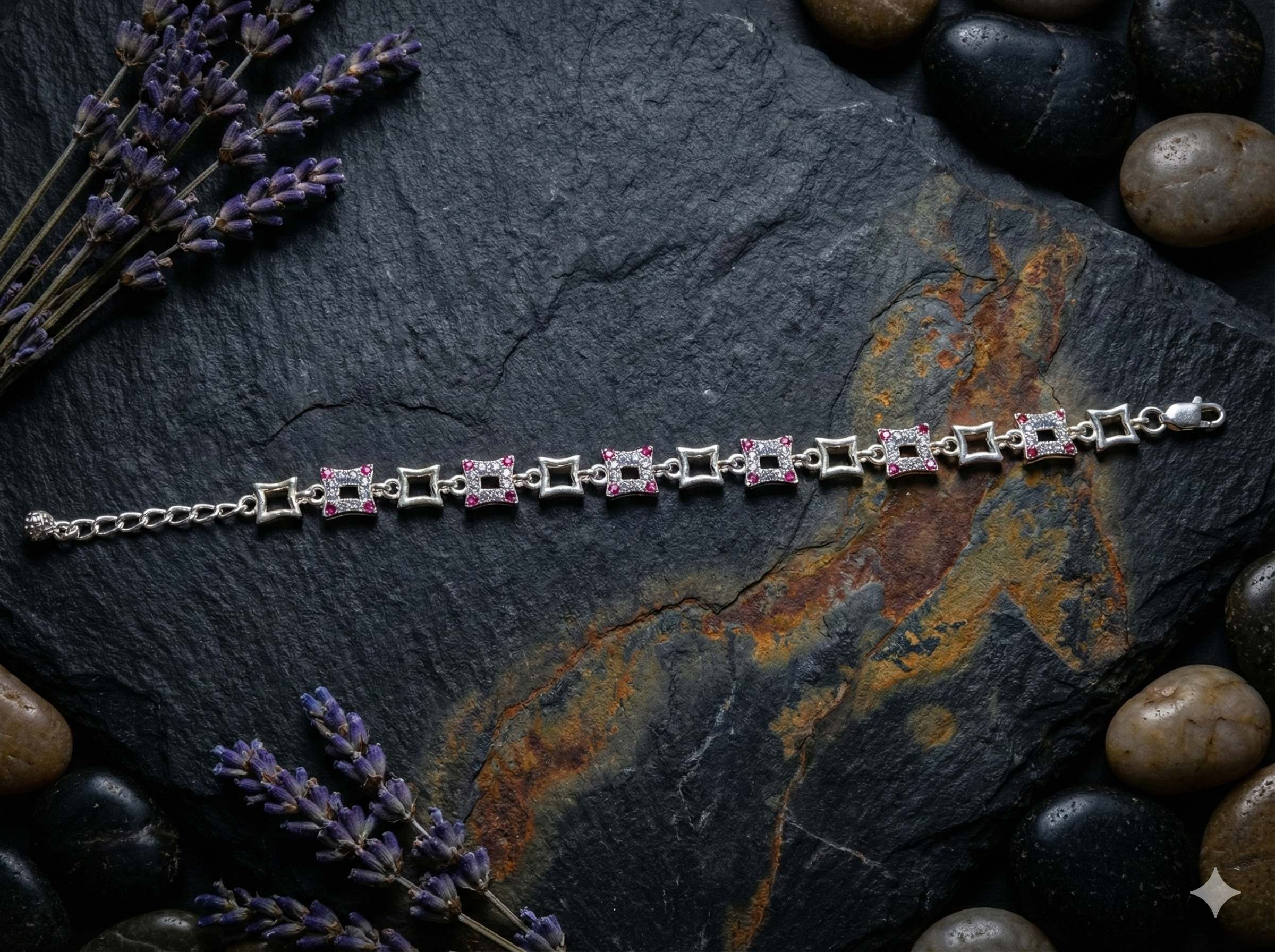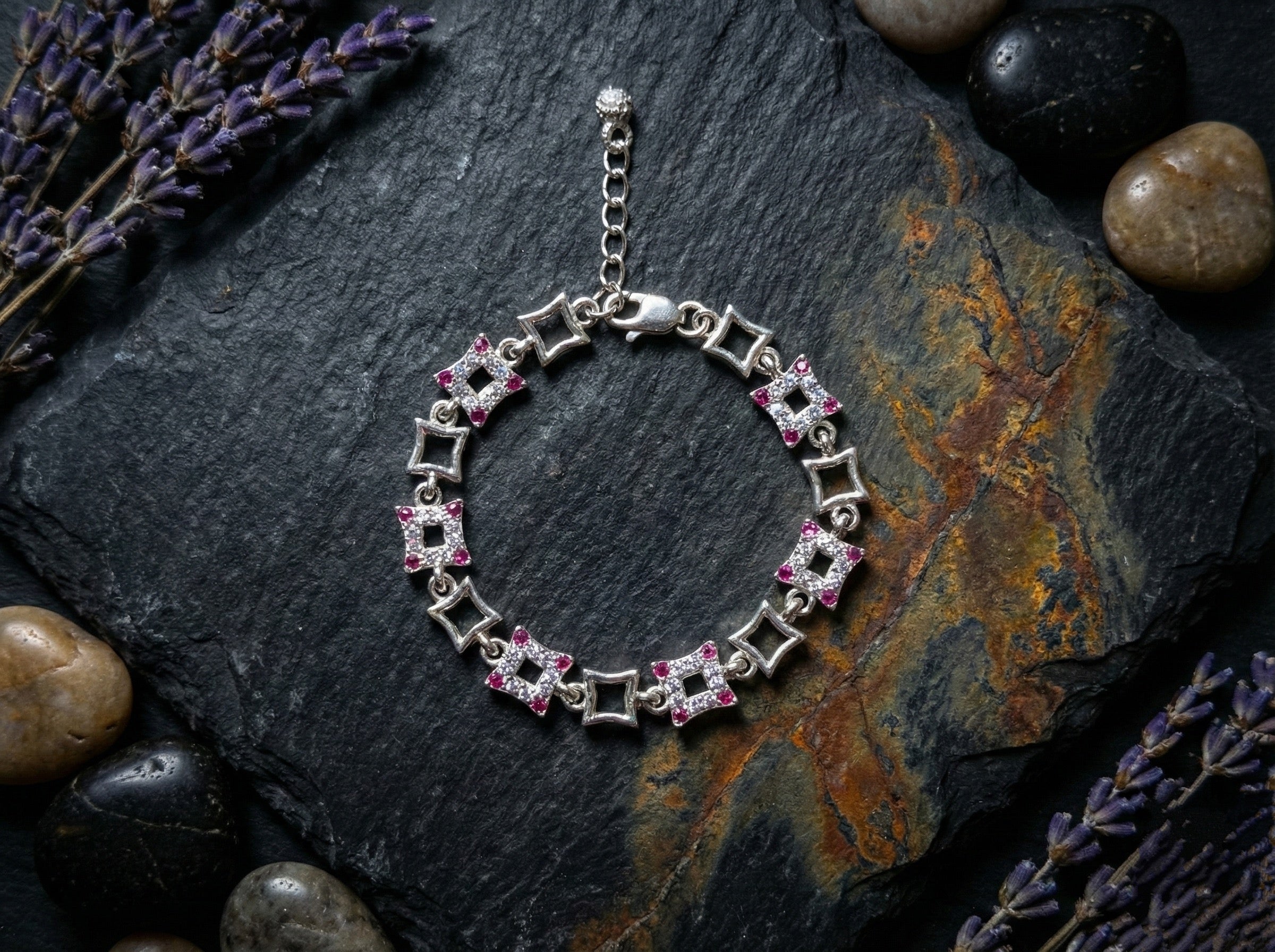 Alternating Square Pave Bracelet – Pink & White by Kalaa Silver